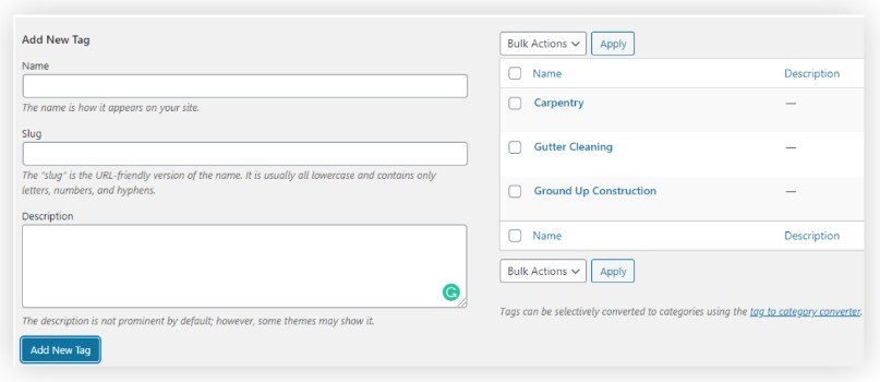 Slug: A slug in WordPress is significantly different from the slimy creature that crawls around in your back yard. It’s a shorthand representation of a word or phrase that can be plugged into a URL. For example, if you have a category called “Commercial Construction”, the slug representation would be something like “commercialconstruction”. This makes the category usable in a URL, since URLs don’t allow spaces.