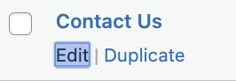 To view or edit your existing forms, click the “Contact Forms” menu option. From the “Contact Forms” page, you can edit a form by hovering your cursor over it and clicking “Edit”.