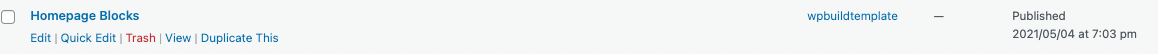 As with posts, you’ll be presented with menu options when you hover over a page: