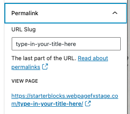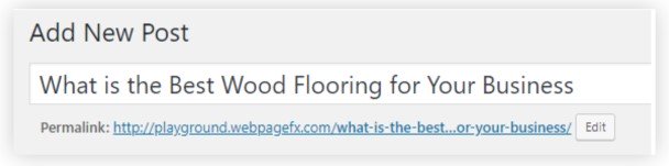 About a second or two after exiting the title field, you’ll notice that the permalink/URL slug is created automatically and matches the title you entered.